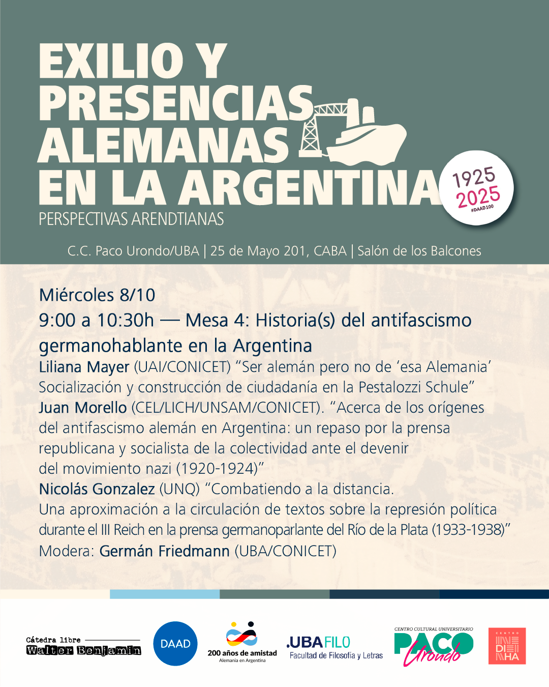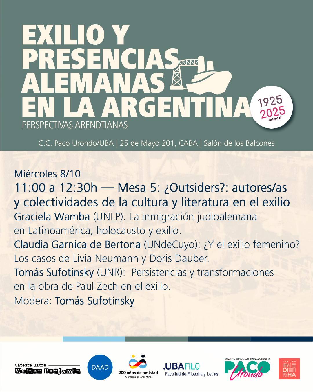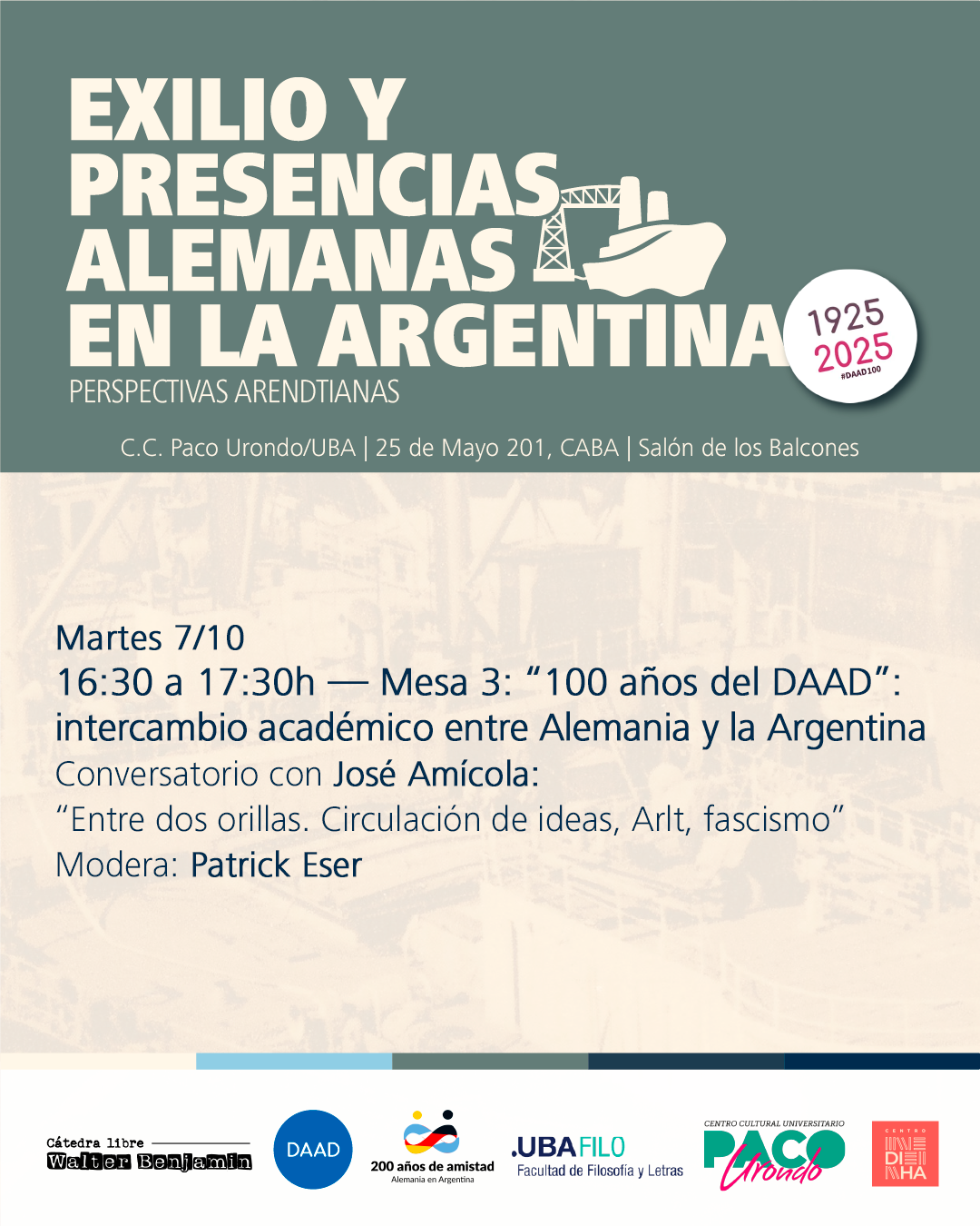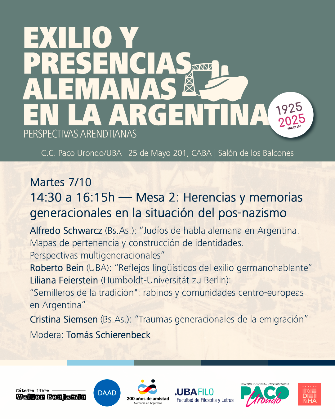Con motivo del centenario del Servicio Alemán de Intercambio Académico (Deutscher Akademischer Austauschdienst; DAAD), estas Jornadas exploran las complejas tramas del exilio y las presencias alemanas en la Argentina durante el siglo XX.
