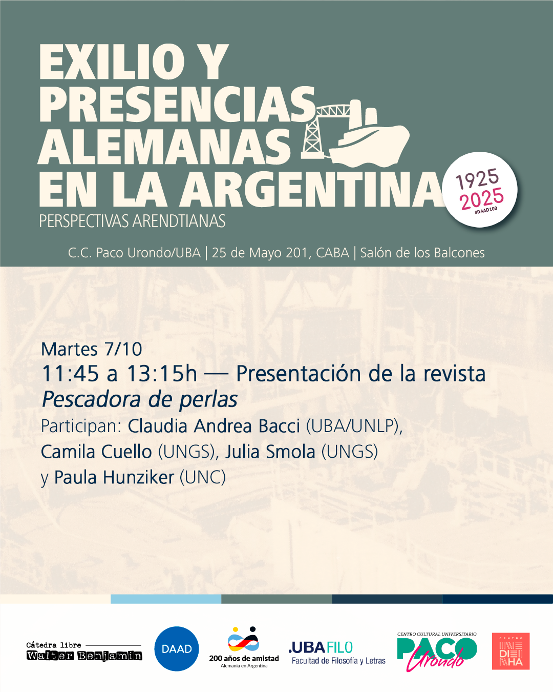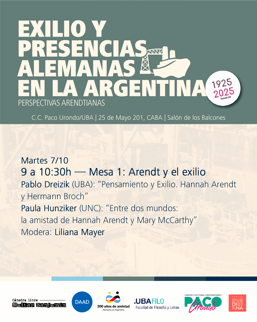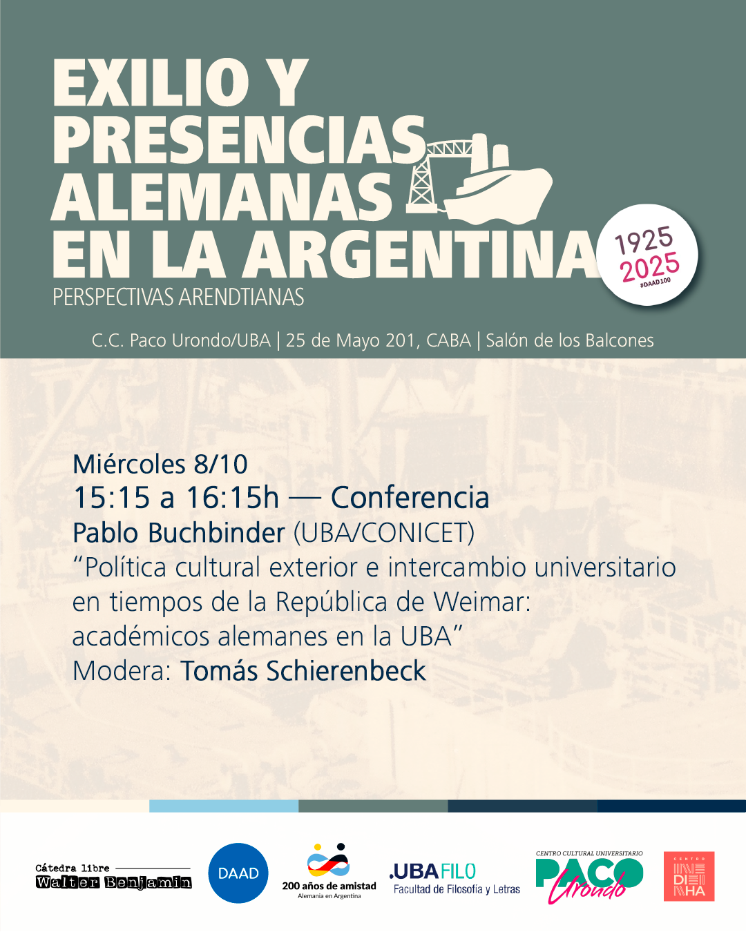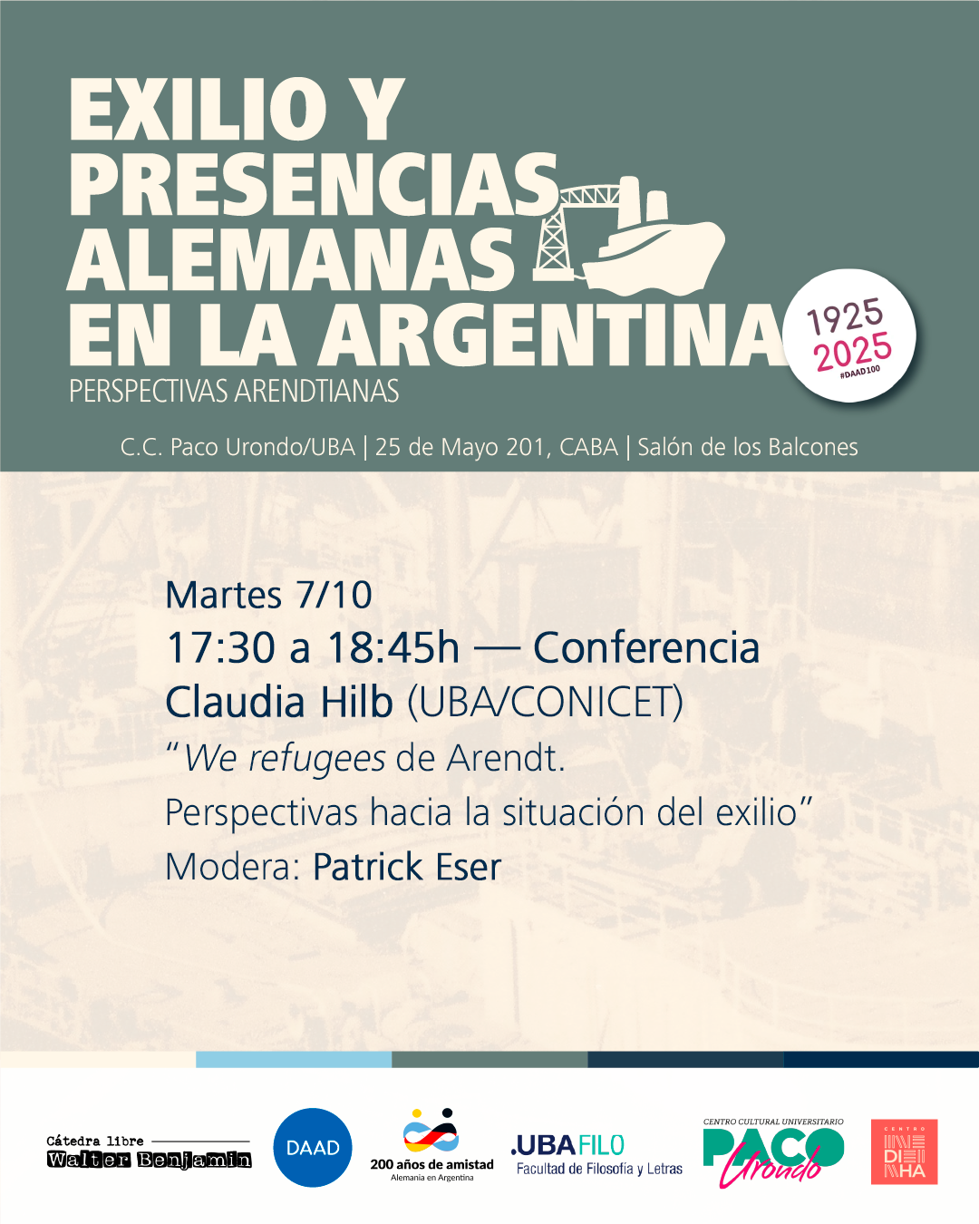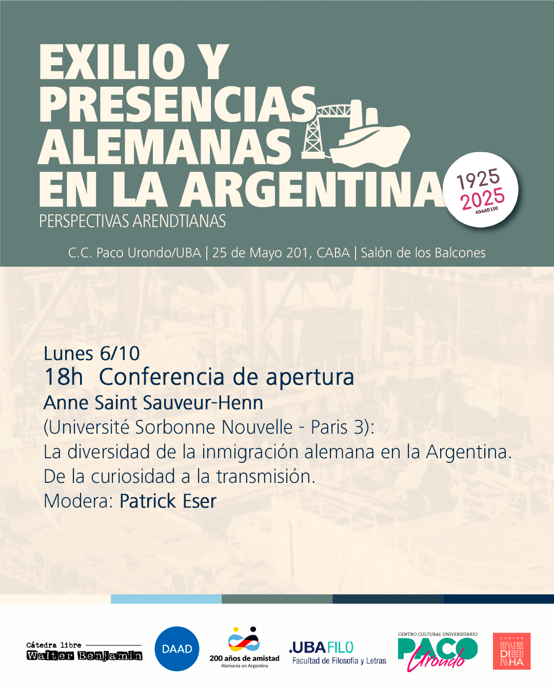 Con motivo del centenario del Servicio Alemán de Intercambio Académico (Deutscher Akademischer Austauschdienst; DAAD), estas Jornadas exploran las complejas tramas del exilio y las presencias alemanas en la Argentina durante el siglo XX.